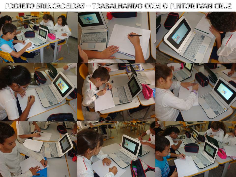 Após trabalho de pesquisa, estudo e apreciação das obras da pintora, os alunos escolheram uma obra, pesquisaram a imagem na internet e salvaram nos netbooks, para realizarem a releitura na sala de informática utilizando o software TUXPAINT.